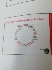 Action research isn’t a randomised control trial – it’s one person doing something in a classroom. It’s not always objective and it doesn’t always prove something. It’s not research that’s done to teachers – it’s teachers doing it. And it’s not new. It’s a way of professionals improving their practice by identifying what they’re interested in and putting it into practice, and then being reflective about it.