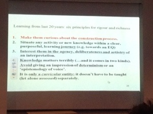 Christine reminds us of McAleavy’s principles of interpretation: subsequentness, real interpretations, range of types including scholarship, a constructive, analytic approach, and focus on the process and context of construction. It’s also important to remember that it must be interpretations, plural. Christine suggests some possible enquiry questions, including, “What is Niall Ferguson trying to say?”